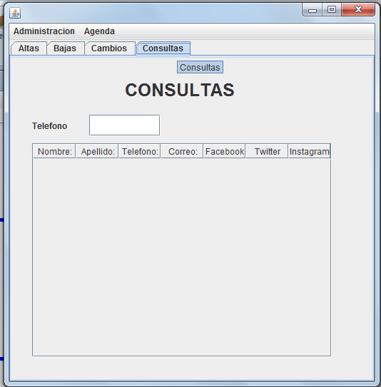 Bueno ya con esto hemos terminado nuestra Agenda Telefónica, solo queda modificar nuestra clase AUXILIAR en el Paquete Controlador. crear el objeto de Controlador y mandar Llamar el método accionesBotones. y obtendremos.